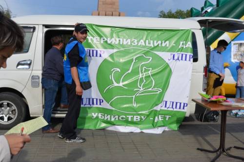 ![]() 9 июня 2015 года на пл.Революции зоозащитники совместно с Бурятским РО ЛДПР выступали за стерилизацию питомцев. В акции приняли участие около 70 человек. Активисты вышли с плакатами: «Стерилизации — да, убийству — нет», «Убивать собак нельзя!». Активисты Бурятского РО ЛДПР совместно с волонтерами раздавали прохожим листовки с лозунгом и объясняли людям, что такое стерилизация и в чем ее преимущество. Татьяна Никифорова, представитель инициативной группы по защите животных: Это акция в рамках всероссийской общей акции «Стерилизации – да! Убийству – нет!». Будем обращаться с призывом к людям, чтобы стерилизовали своих животных. Это основная причина, почему бездомные животные на улице. В цивилизованном обществе бороться с популяцией бездомных животных методом отстрела это самое настоящее варварство. В развитых странах уже давно эту проблему решили с помощью стерилизации. Мы призываем местные и федеральные власти обратить внимание на проблему безнадзорных животных. – прокомментировал и.о.координатора г.Улан-Удэ от ЛДПР Александр Измайлов. Игорь Береговой активист Бурятского РО ЛДПР: А если так же с человеком? Просто стерилизовать и всё? У каждого должен быть шанс - и у человека, и у любого животного. Кошки исчезнут, кто появится? Мыши, крысы. Мыши и крысы появятся - зараза по улицам пойдёт. Принятого Народным Хуралом закона «О животных» страсти в обществе накалились. Вернётся ли Улан-Удэ к убийству животных – практике, которая десятилетиями расходовала бюджетные средства и имела нулевую эффективность? В большинстве стран мира проблема бездомных животных была решена гуманным путём – при помощи их стерилизации. Чиновники привыкшие сопротивляться любым прогрессивным программам. Большая часть депутатов Народного Хурала, не скрывая, выступают за убийство безнадзорных животных «гуманных путём». Посетил также митинг депутат Народного Хурала РБ от фракции КПРФ Баир Цыбиков которому предложили взять хотя бы десять щенят и раздать их среди депутатов НХ, на что он данное обращение проигнорировал. – прокомментировал пресс-секретарь Бурятского РО ЛДПР Елена Шилкина. Одна из целей митинга заключалась в том, чтобы обратить внимание местных и федеральных властей на проблему бездомных животных. Сегодня в России сложились условия, при которых невозможно сразу и полностью убрать всех бродячих кошек и собак улиц. Убийство, как наиболее жестокая попытка регулировать из численность лишь усугубляет ситуацию. Мы предлагаем государству и обществу концепцию по комплексному регулированию численности животных, основанную на выводах исследований Всемирной Организацией Здравоохранения. Концепция включает в себя пункт по стерилизации бездомных животных для снижения их численности и агрессии по отношению к людям, а также является более экономически выгодным решением, нежели практика уничтожения безнадзорных собак – отметил и.о.координатора Бурятского регионального отделения ЛДПР Александр Коренев. Сегодня на телеканале Аригус сообщалось о том, что на пл. Революции зоозащитники снова провели митинг с лозунгом «Стерилизации – да! Убийству – нет!». Интересный художественный вымысел. Если сказать языком юридическим, то полное вранье и клевета, высказанная корреспондентами телеканала Аригус . Данный митинг был организован зоозащитни