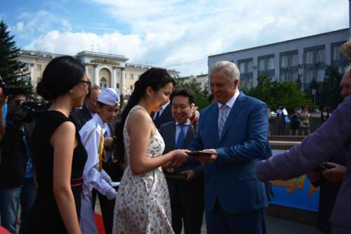 Сегодня 141 выпускнику школ Улан-Удэ вручили золотые медали. Каждая школа гордится своими учениками-медалистами. Торжественное вручение медалей состоялось сегодня на площади Советов.